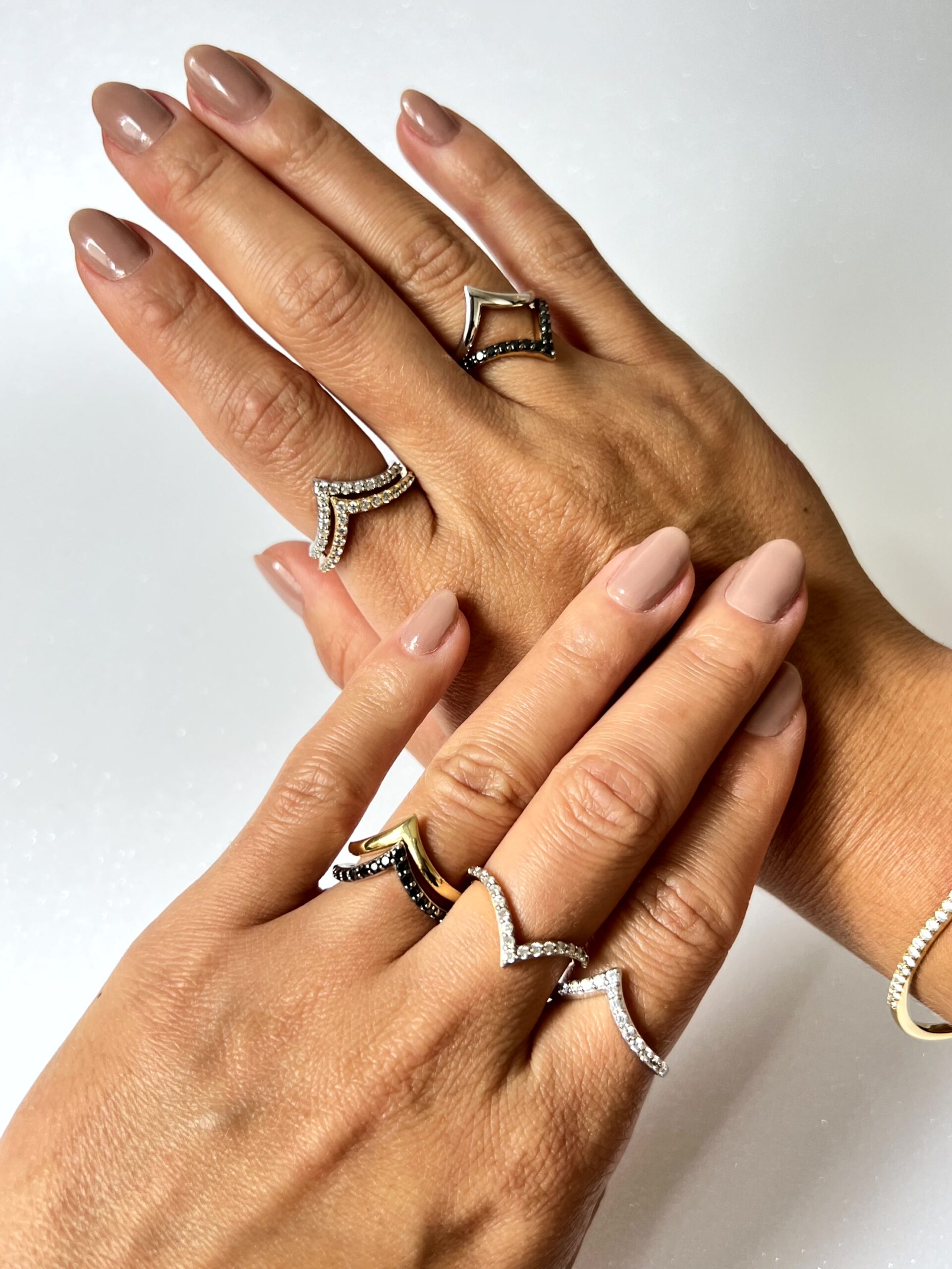Valor em até 10x no cartão Anel Malu – cravejado com diamantes negros: R$ 6.900,00
